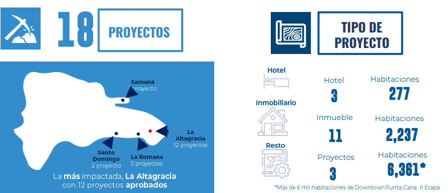 Los proyectos aprobados por el Consejo de Fomento Turístico (Confotur), del Ministerio de Turismo (Mitur), se desarrollan en Samaná, La Altagracia, La Romana y Santo Domingo.