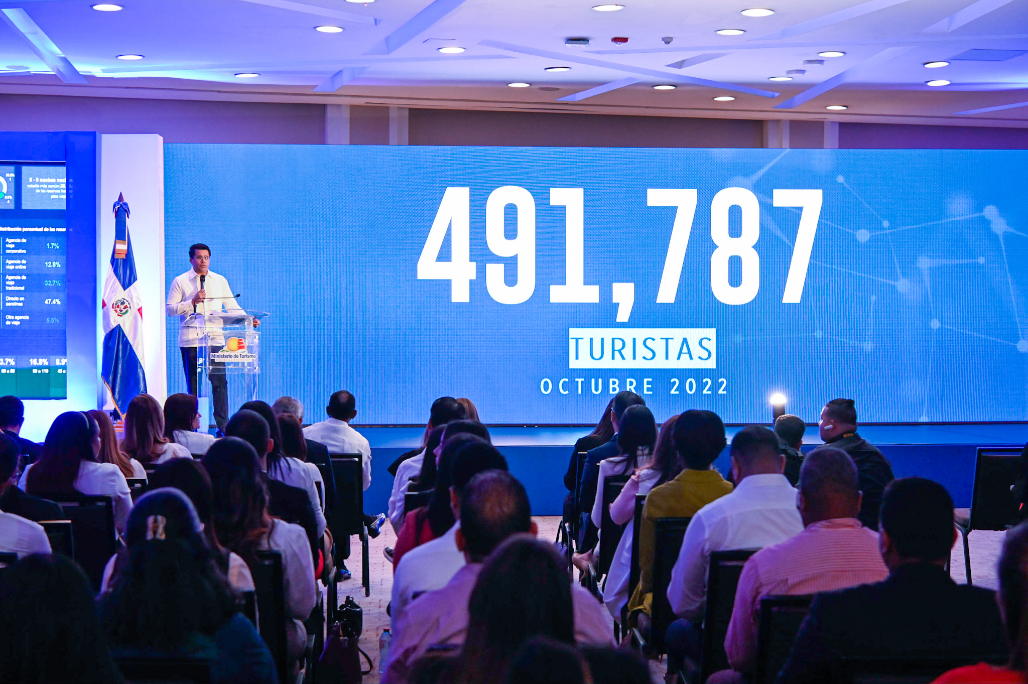 El ministro de Turismo, David Collado, aseguró que el pasado mes de octubre, República Dominicana volvió a romper récords en la llegada de visitantes, al registrar la histórica visita de 491,788 turistas el mes pasado, superando en un 32% el mismo periodo del año 2019.