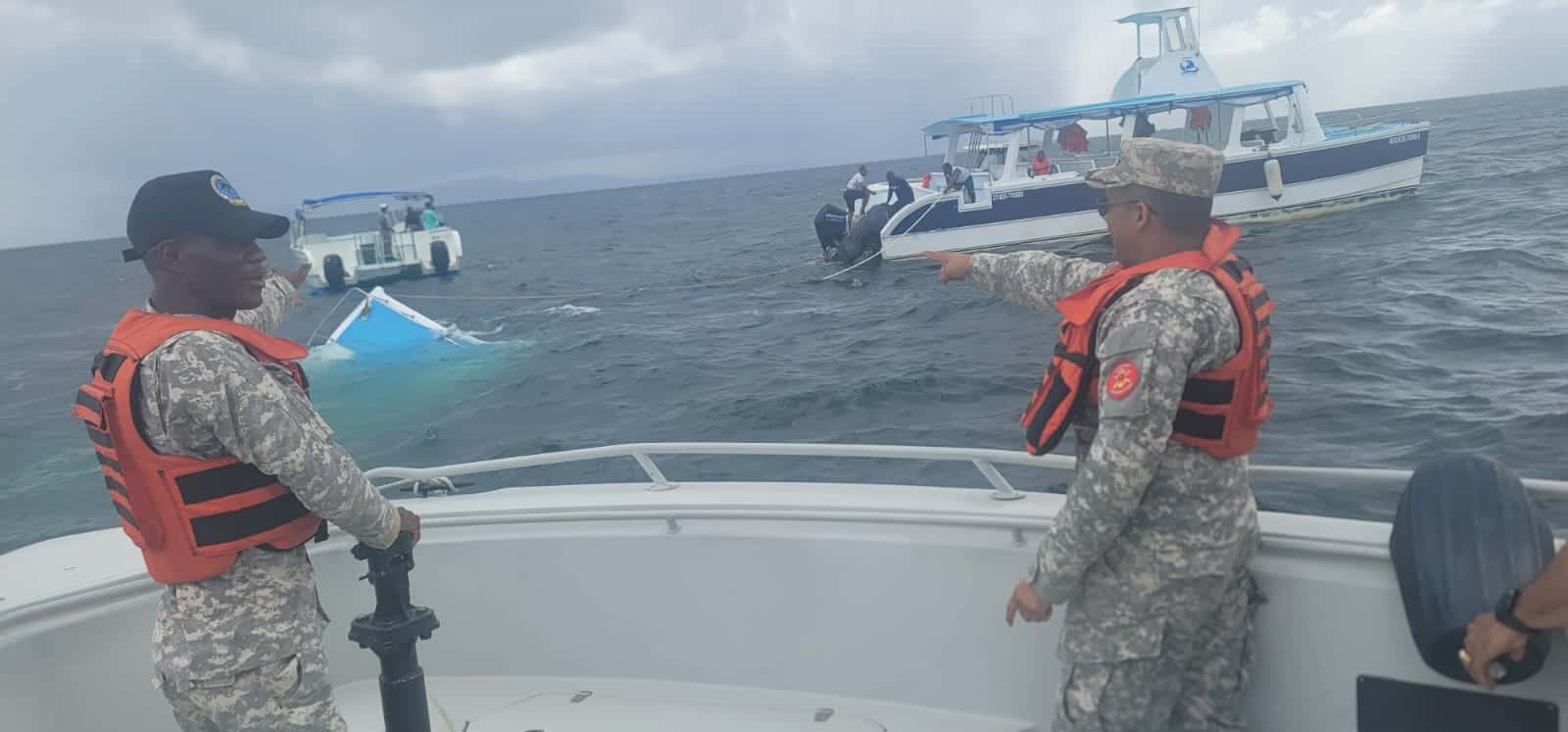 Las autoridades informaron que los 55 excursionistas que iban a bordo de un catamarán fueron rescatados gracias a la rápida intervención de unidades de la Armada Dominicana y de otros organismos.