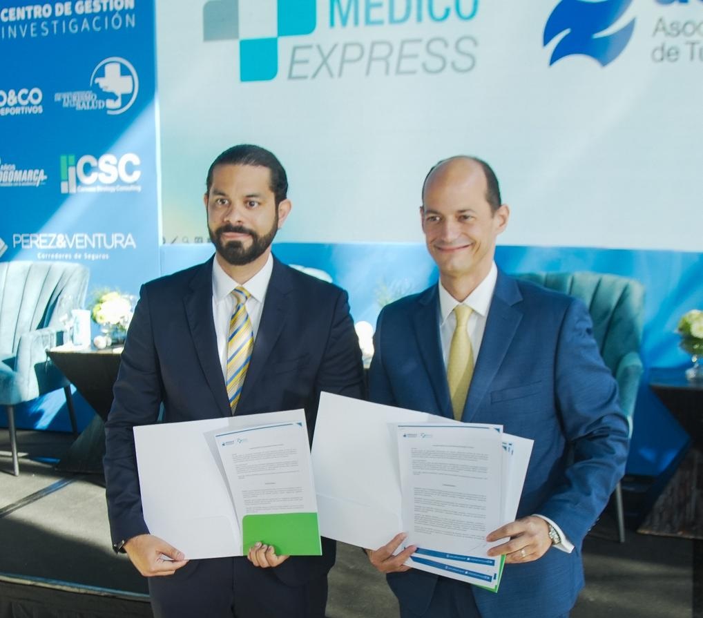 El acuerdo fue suscrito por Yerik Pérez, presidente de Adotur, y por Alejandro Cambiaso, presidente ejecutivo de Médico Express, consolidando una visión compartida orientada a elevar los estándares de seguridad, calidad y experiencia del turismo deportivo en el país.