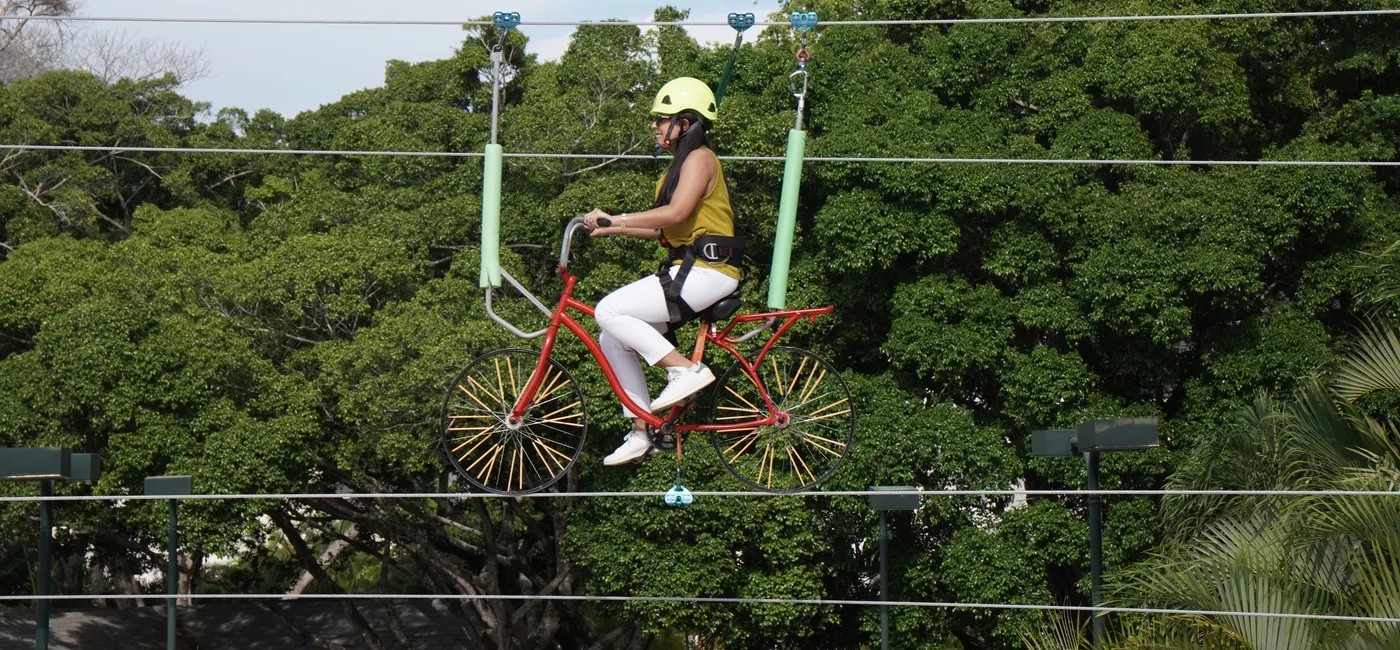 El Bike Zipline ofrece a los viajeros un paseo seguro que combina la adrenalina de una tirolesa con la diversión del ciclismo. La experiencia fue diseñada tanto para amantes de la aventura como para familias. Los visitantes pueden deslizarse por el cable mientras pedalean a su propio ritmo, lo que lo hace accesible para ciclistas de todas las edades y niveles de condición física.