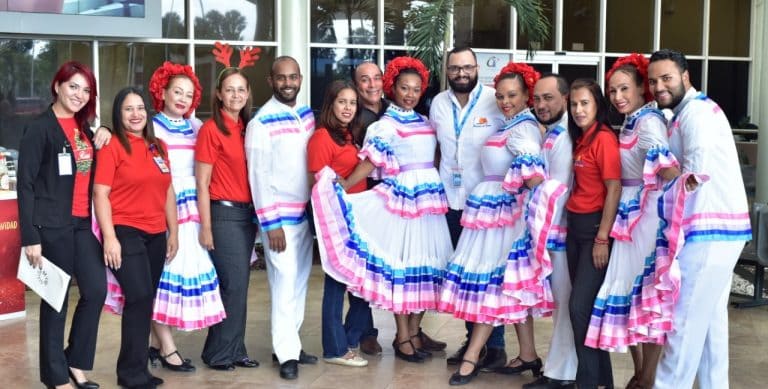 El Ministerio de Turismo (Mitur) junto al aeropuerto Internacional del Cibao organizaron el primer recibimiento navideño “con sabor cibaeño” en una festiva recepción de bienvenida a ritmo de merengues típico y navideños a cargo del Ballet Folklórico del Mitur.