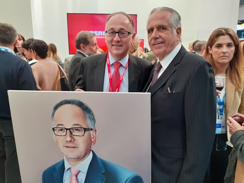En ese sentido, el presidente del Grupo Punta Cana, Frank Rainieri, visitó el stand de Preferente para recoger su retrato, que se encontraba expuesto junto al del hotelero Gabriel Escarrer Juliá, presidente de honor de Meliá.