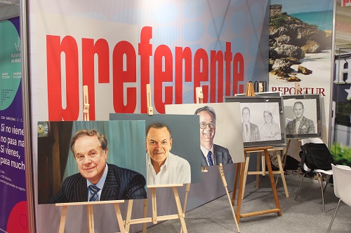 El Grupo Preferente ha expuesto en su estand piezas -óleos y dibujos- realizadas por la retratista cubana, Danaice, quien plasmó con gran realismo hoteleros top como Fluxá, Matutes, los hermanos Riu, Rainieri, Hidalgo o Luis Gallego, entre otros.