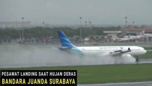 Aviones aterrizan y despegan sin dificultad en una pista repleta de agua